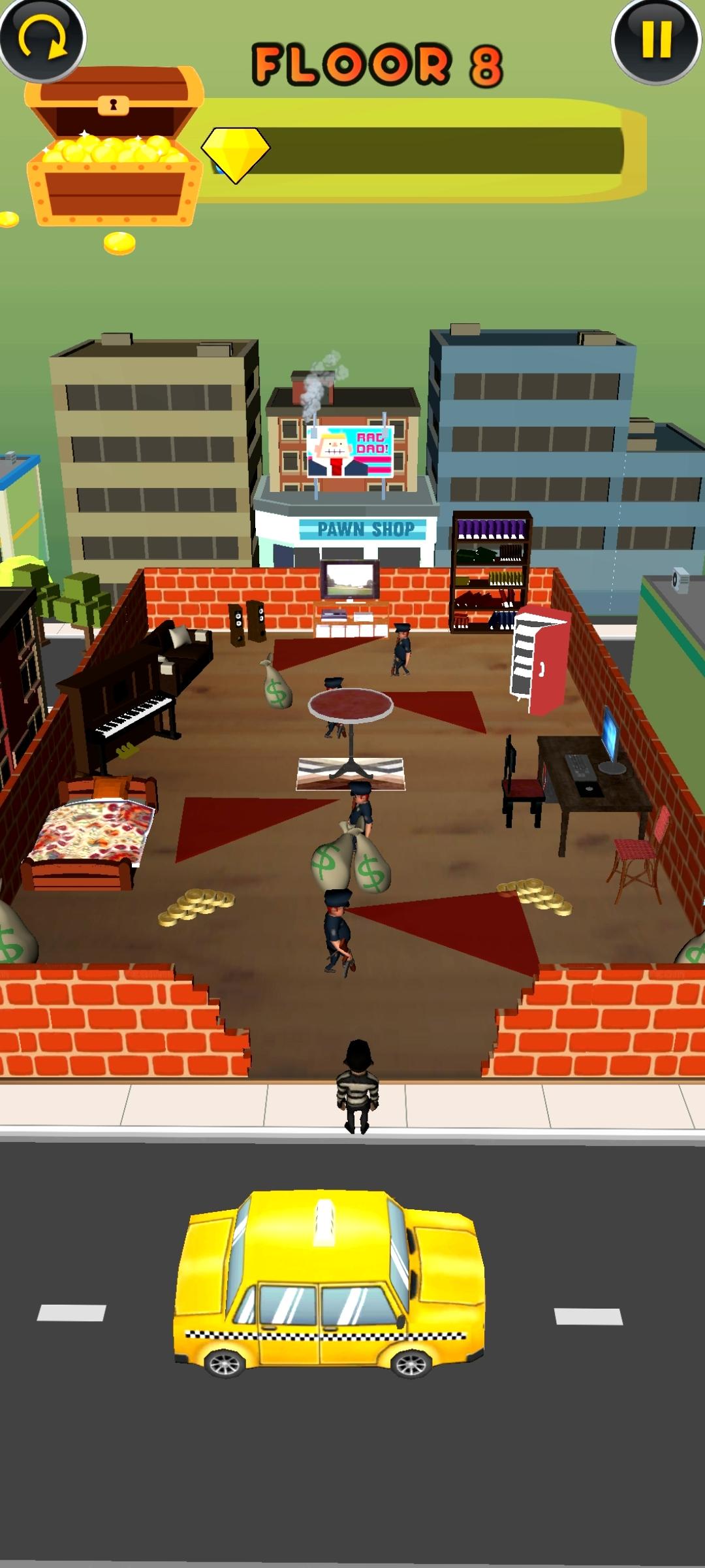 3、要变成最强的盗贼,就需要在警官的严实防御下顺利离去,并获得大量宝贝。