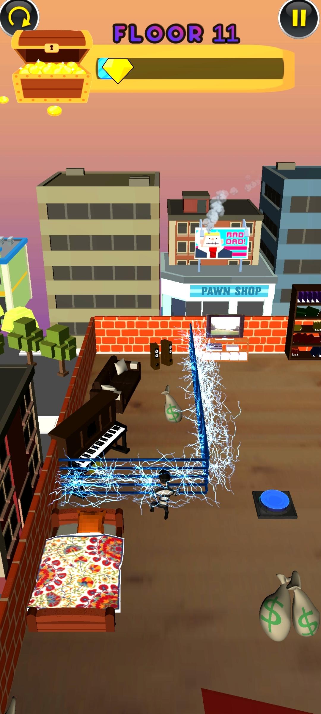 窃贼是一款动作冒险模拟类游戏,玩家将扮演一位厉害的盗贼,悄悄潜入展览馆,不巧被警官发现了,开启了疯狂的逃跑模式,从一层跳到另一层,尽可能获取很多物品,不要让警官抓住。
