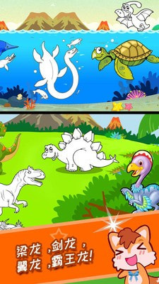 2、海量底图随意涂色绘画,图案丰富久玩不厌,囊括各种各样的恐龙;