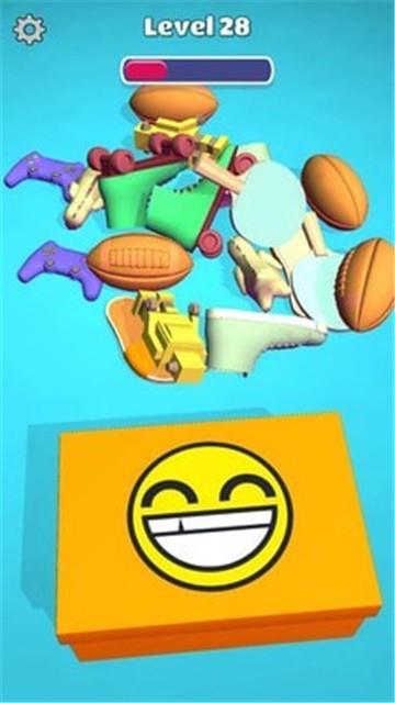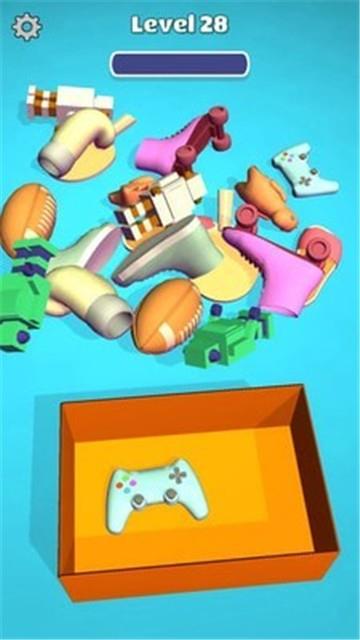 3:玩家将物品按类别配对,然后将它们塞进盒子中,随着关卡的推进,混乱也会越来越大,一点点完成挑战。
