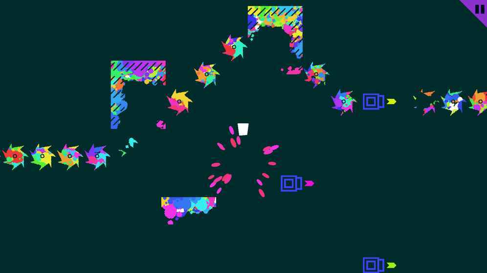 游戏通过虚拟按键进行操作,玩家所控制的小方块带有染色的作用;