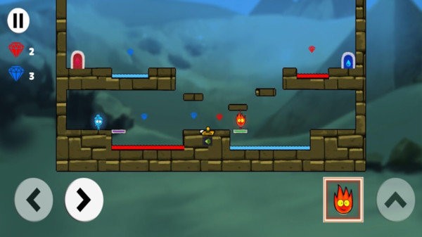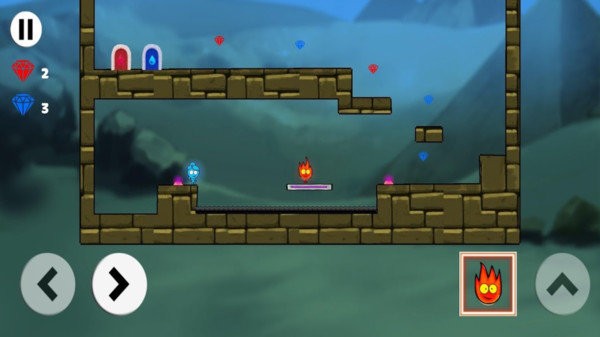 操作过程非常简单的挑战性闯关游戏,冰女生和火男孩慢慢在冰风祭坛慢慢探险