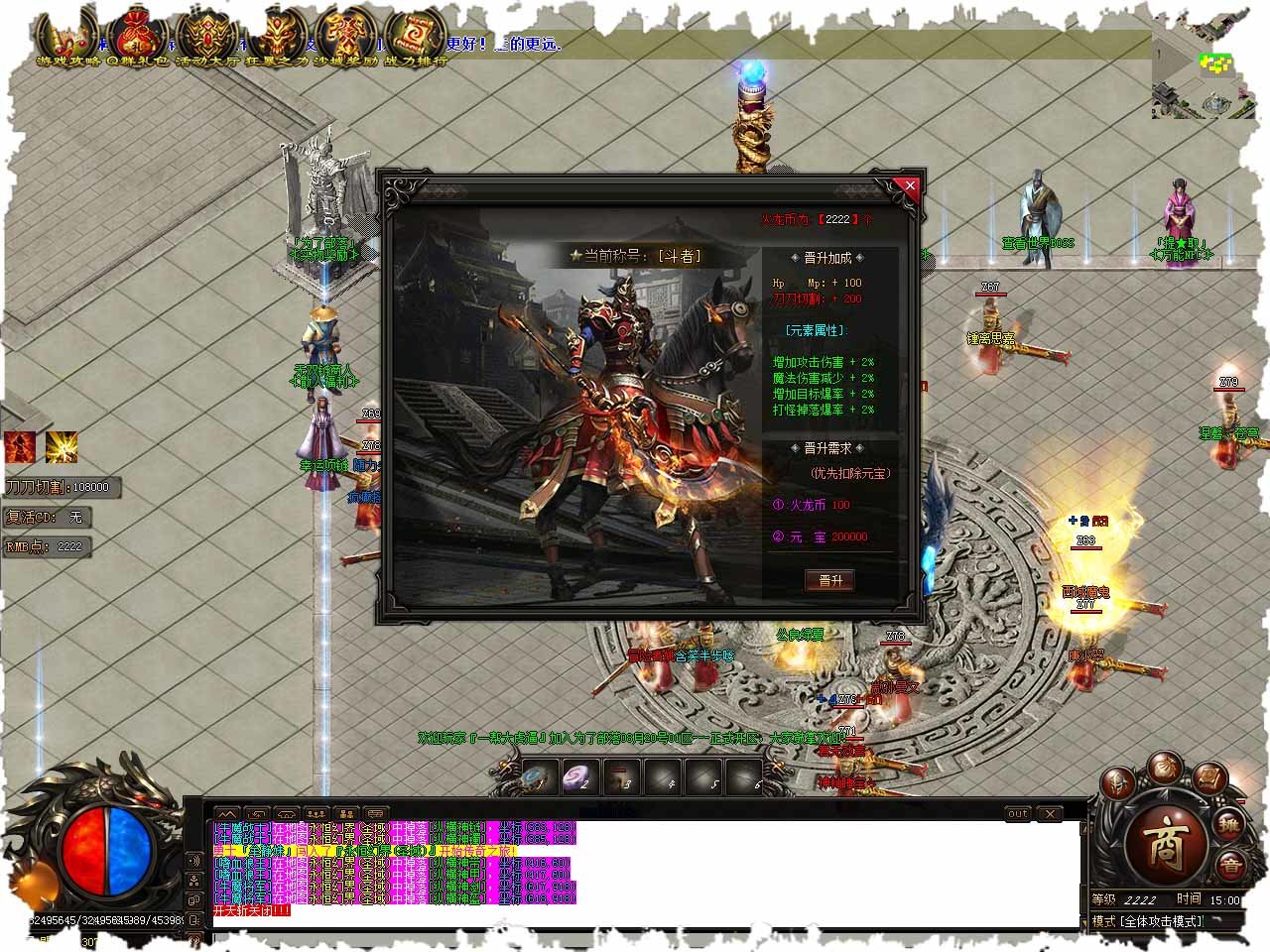 数万人一同竞技,每天9点都有大型的比赛,百人在线攻城,画面相当的刺激。