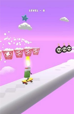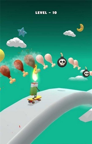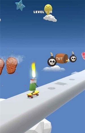打火机滑冰运动员是一款非常有趣的跑酷游戏。打火机滑冰运动员游戏中玩家将控制打火机进行跑酷,尽可能烹饪好打火机滑冰运动员游戏上方的食物,并且要注意炸弹最终到达终点成功让顾客吃到熟的食物。