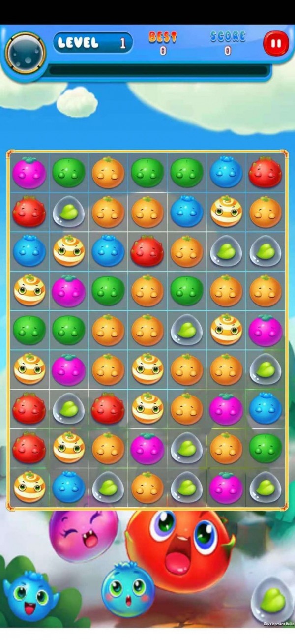 典型的三消小游戏,移动同色元素使其连接在一条直线上即可完成消除,获取积分。