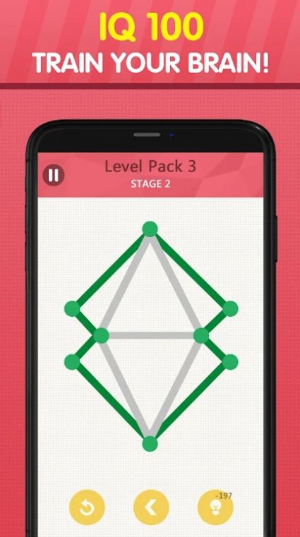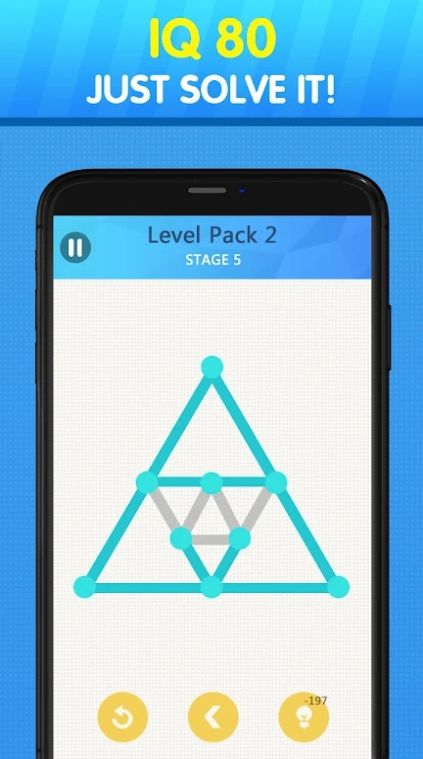 1、趣味的闯关玩法,发散你的思维,想一想如何顺利画完所有的图形;