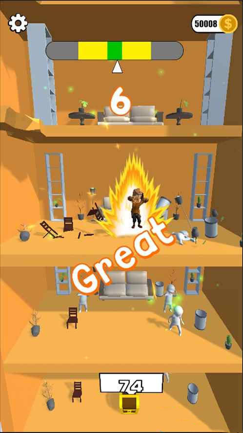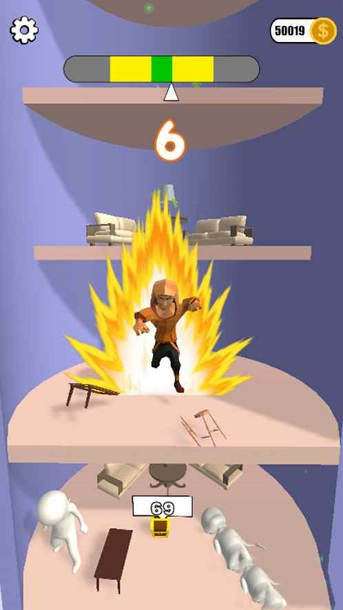 2、不断砸地板,不断向下砸楼,让自己获得更多金币;
