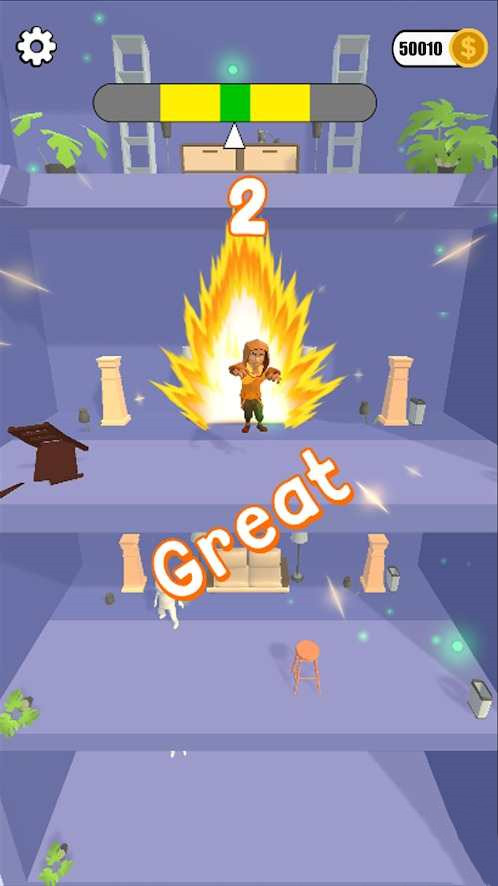 2、点击控制好发力才能够成功砸开并不断向下,沿途还可以收集各个楼层的奖励。