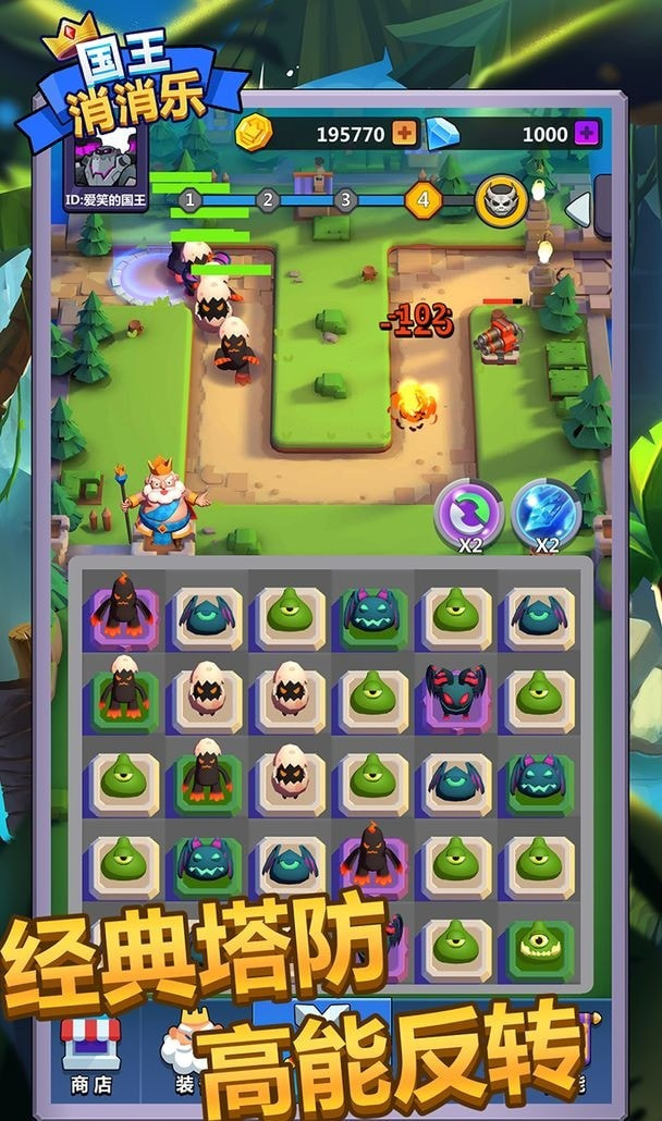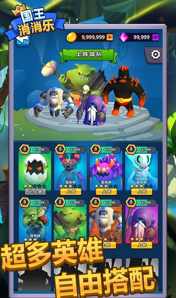 国王消消乐是经典塔防游戏组建你的英雄角色最强阵容,这里更有多种不同类型的英雄角色,轻松的突破更棘手的难关。
