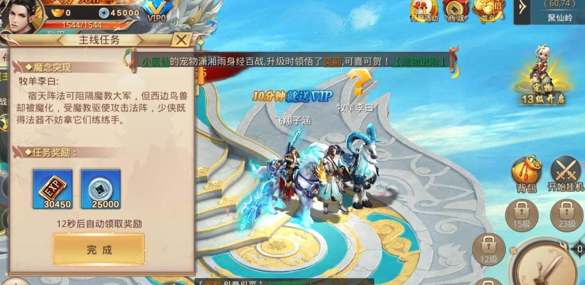 2.玩法很丰富,在线接收各种各样的任务能快速获得金币和装备,收服专属你的坐骑,遨游这个仙界;