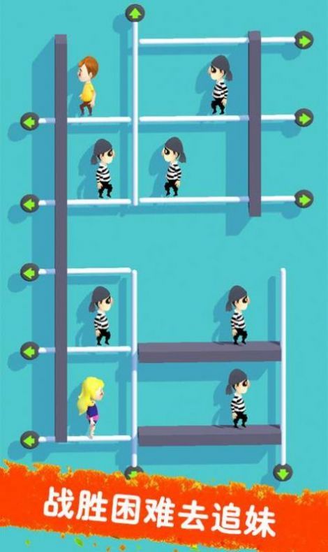 追妹大闯关这款游戏采用了卡通的风格再来进行更多的挑战,追求自己喜欢的女神,在机关陷阱遍布的关卡中。