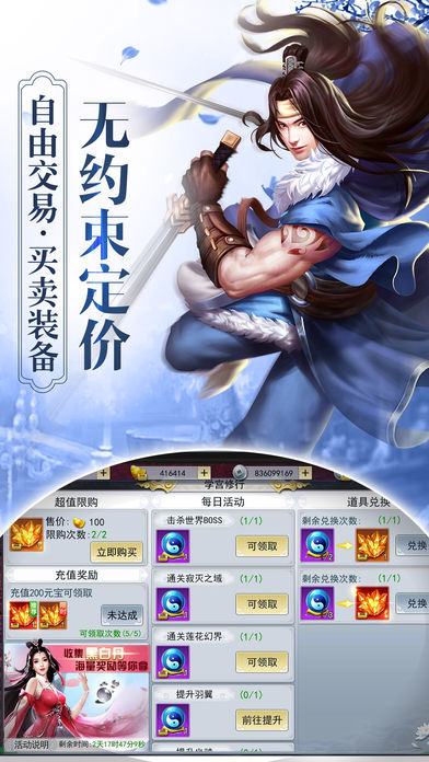 玩家面对面交易,更有交易市场支持自主定价,资源自由流通,畅享游戏便利;