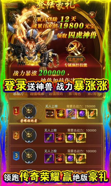 这款游戏让你达到传奇巅峰,在游戏里打怪升级,还会掉落很多的装备
