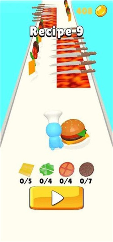 它是一款让玩家来操作制作汉堡的大厨在赛道上收集汉堡的各种食材的跑酷小游戏。