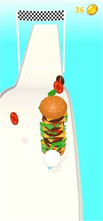 玩家可以使用手指来控制主角的左右移动、进行走位,而取得的汉堡材料会被大厨捧在手中,越堆越高。