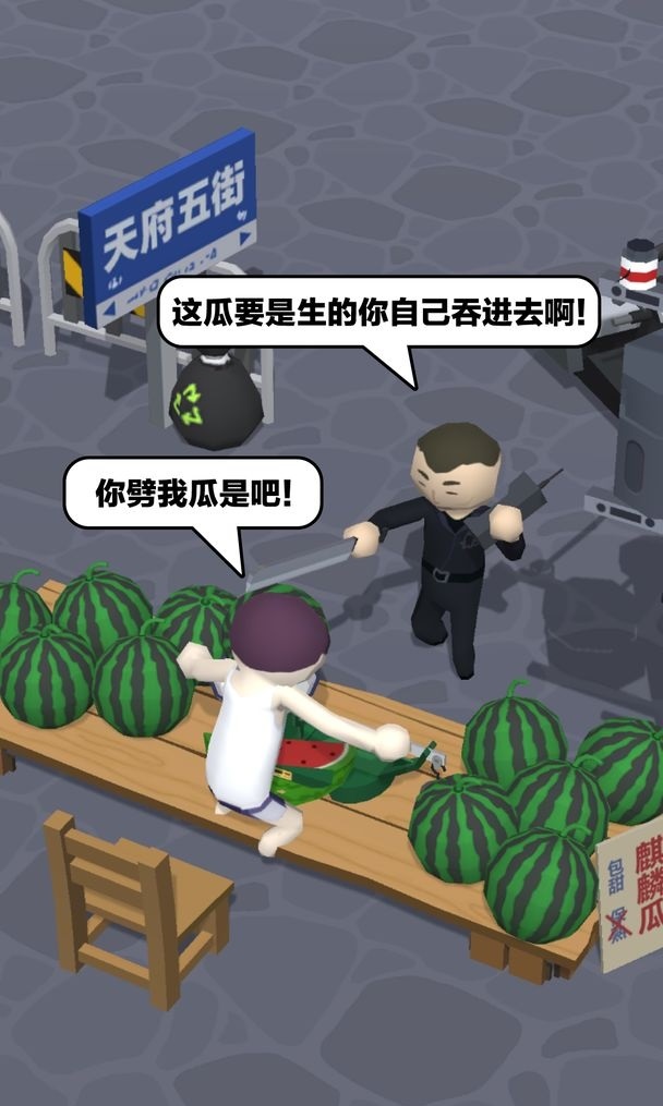 这瓜保熟吗游戏是一款非常趣味的休闲游戏,游戏中玩家扮演一名西瓜摊主,有很多不怀好意的人来找茬,你一定要好好的收拾他们,游戏中有非常多的台词都经典重现了,玩起来非常的趣味,还可以慢慢解锁很多厉害的道具使用,感兴趣的小伙伴快来下载游戏玩耍吧。