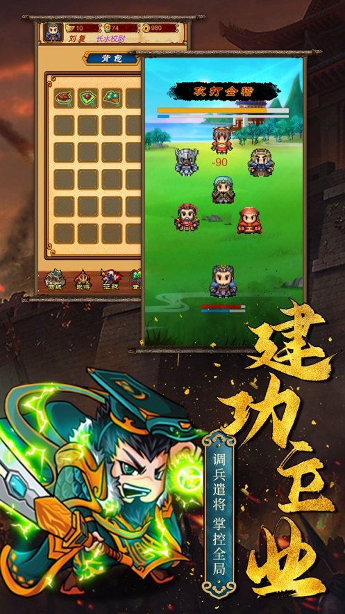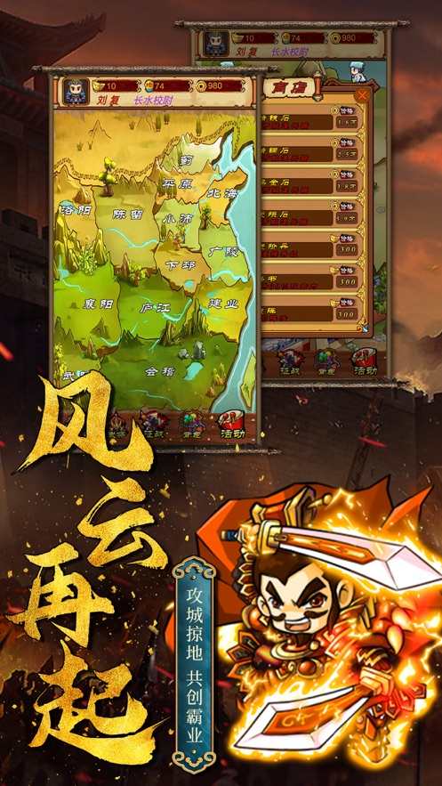1、三国题材的战斗类型的手游,多种不同的武将,玩家可以去进行招募;