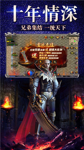 继承传奇13年的辉煌,行会站、土城夺宝等等玩法都有,如果你想玩老传奇,就来试玩吧;