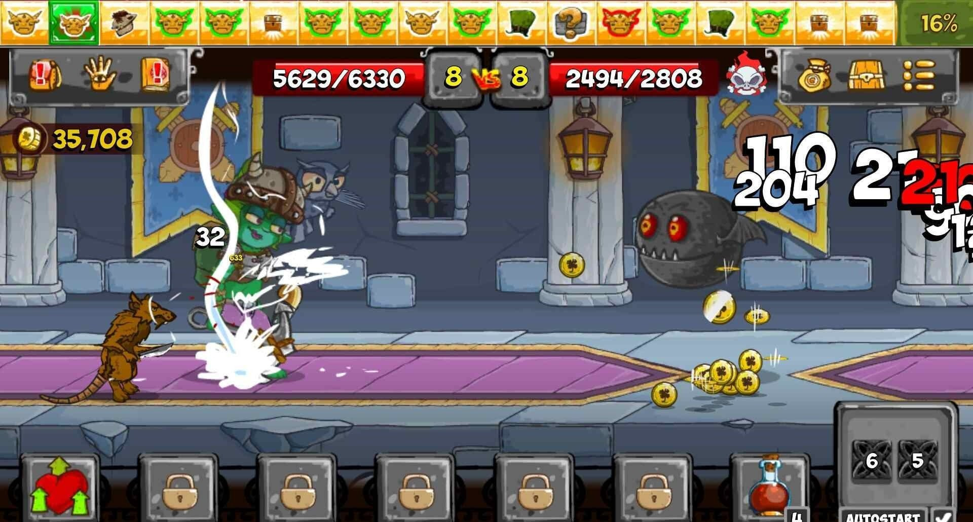 打败敌人获得黄金和稀有战利品。