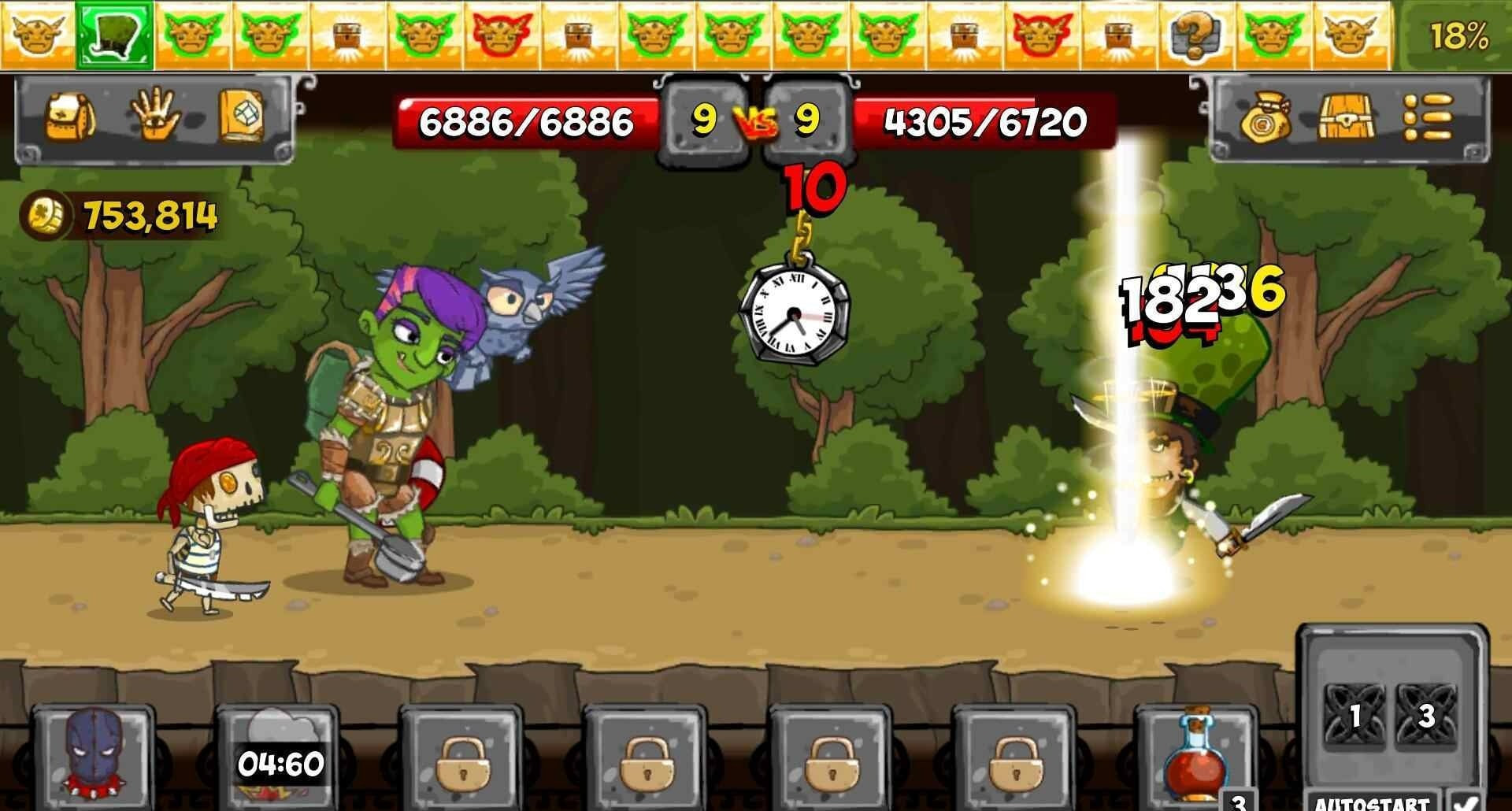 单击以攻击敌人并帮助英雄,升级角色以发现他的独特能力。