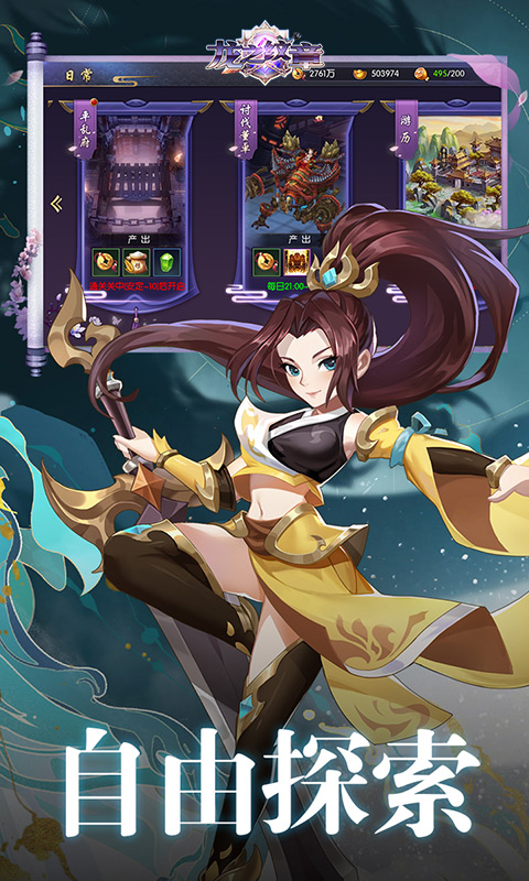 2、玩家可通过主线关卡,攻城略地、击杀贼寇等各项玩法,收集并养成专属于自己的强力的角色,并且开疆扩土,成为一方霸主;