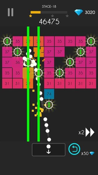 游戏操作简单,玩家只需要滑动并在屏幕上单击,左右滑动即可调整球的发射角度,轨迹就可以辅助使用。