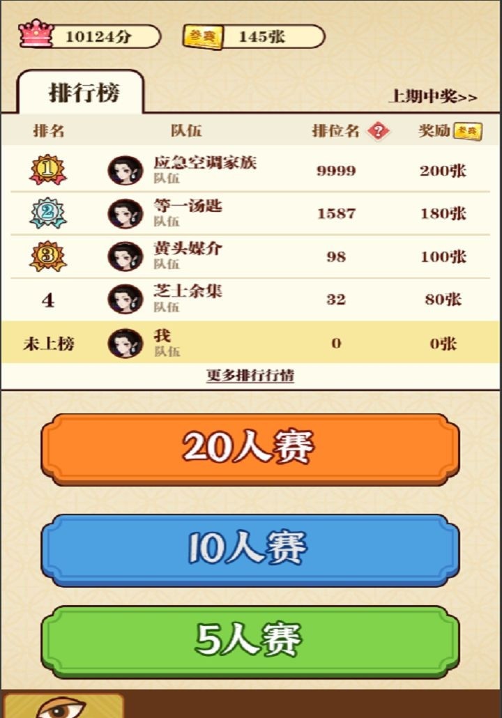 2.游戏中有多种赛制,可以参加5人赛,10人赛,20人赛,每一种赛制都非常的精彩。