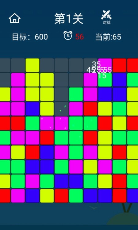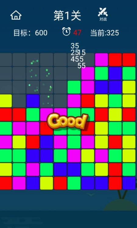 游戏采用简约的画面设计风格,经典的乐趣消除游戏模式中的相同色块。