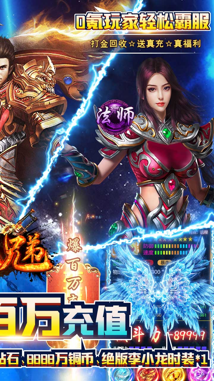 屠龙兄弟BT手游是一款超刺激超爽快的多人同屏角色战斗游戏,玩家将自由挑选三种职业进行冒险,游戏中更有丰富的武器装备,时装,萌宠坐骑等你来拿,快来和兄弟一起作战吧!