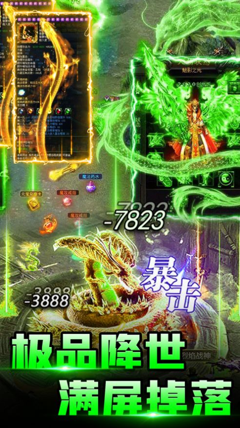 3、全新的对战模式、无限制的副本刷怪,10倍爆率极品神装让你拿到手软。