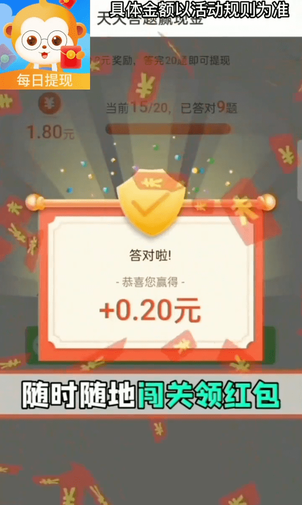 3、答题闯关你能坚持到多少关?只要全部答对就能和其他玩家一起来分红。