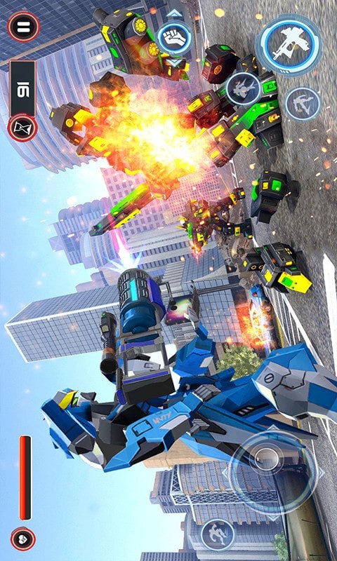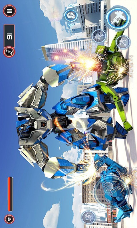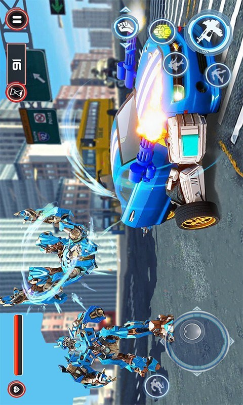 游戏里玩家可以操控巨型机器人在城市里自由行动,同时机器人配备了多种大杀伤力武器供玩家自由选择和使用。游戏中我们需要不但打击罪犯击倒他们保卫城市的和平。众多3D真实打斗场景的构建,可以让玩家充分享受指尖的快感,模拟潜水和行走的两种形态随意切换,会让玩家的城市战斗之旅不再单调,这是一款自由度和操作度非常高的3D动作类游戏,您将会看到一个新时代的3D机器人变形游戏。满足你对变换机器人游戏的渴望。现在就来掌握最好的动物机器人游戏。如果喜欢这款游戏的话那就赶紧下载体验吧。