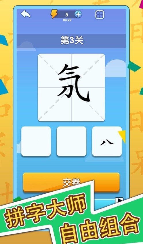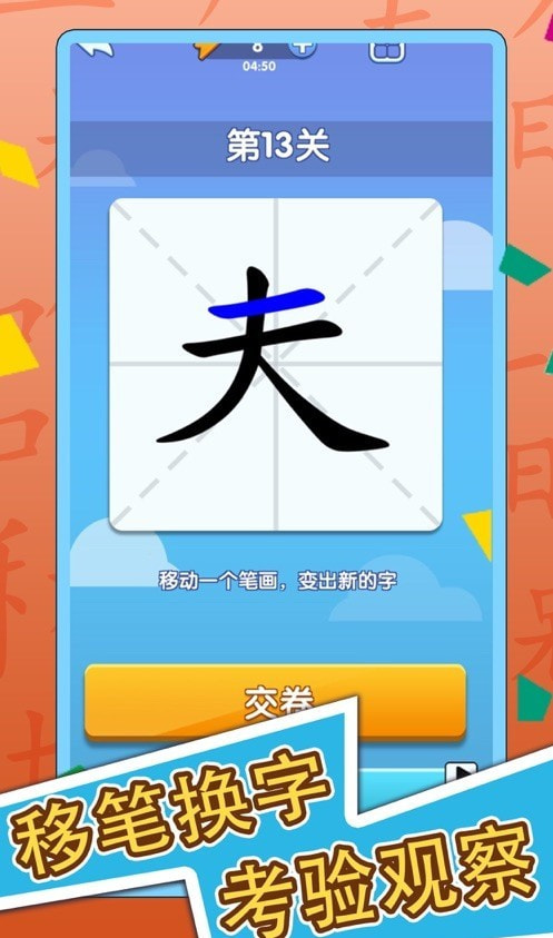 玩家需要根据关卡中给出的文字来加上一笔,让原来的汉字变成一个全新的汉字。