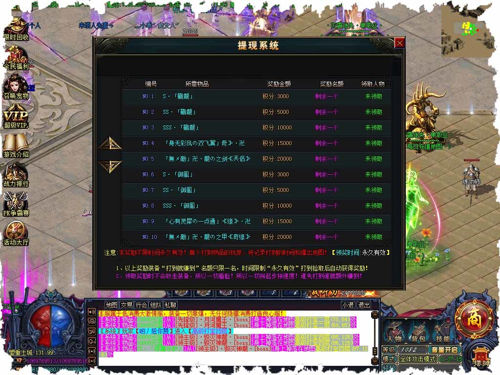 [地图怪物]:<只刷材料BOSS,击杀极高几率爆出神器材料!