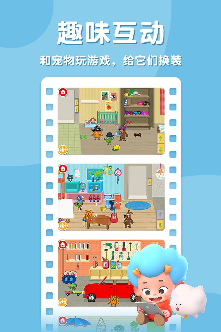 纯卡通的画面风格很受孩子们的欢迎,游戏中的故事也很有意义,可以引导宝宝多了解一些生活的小知识。