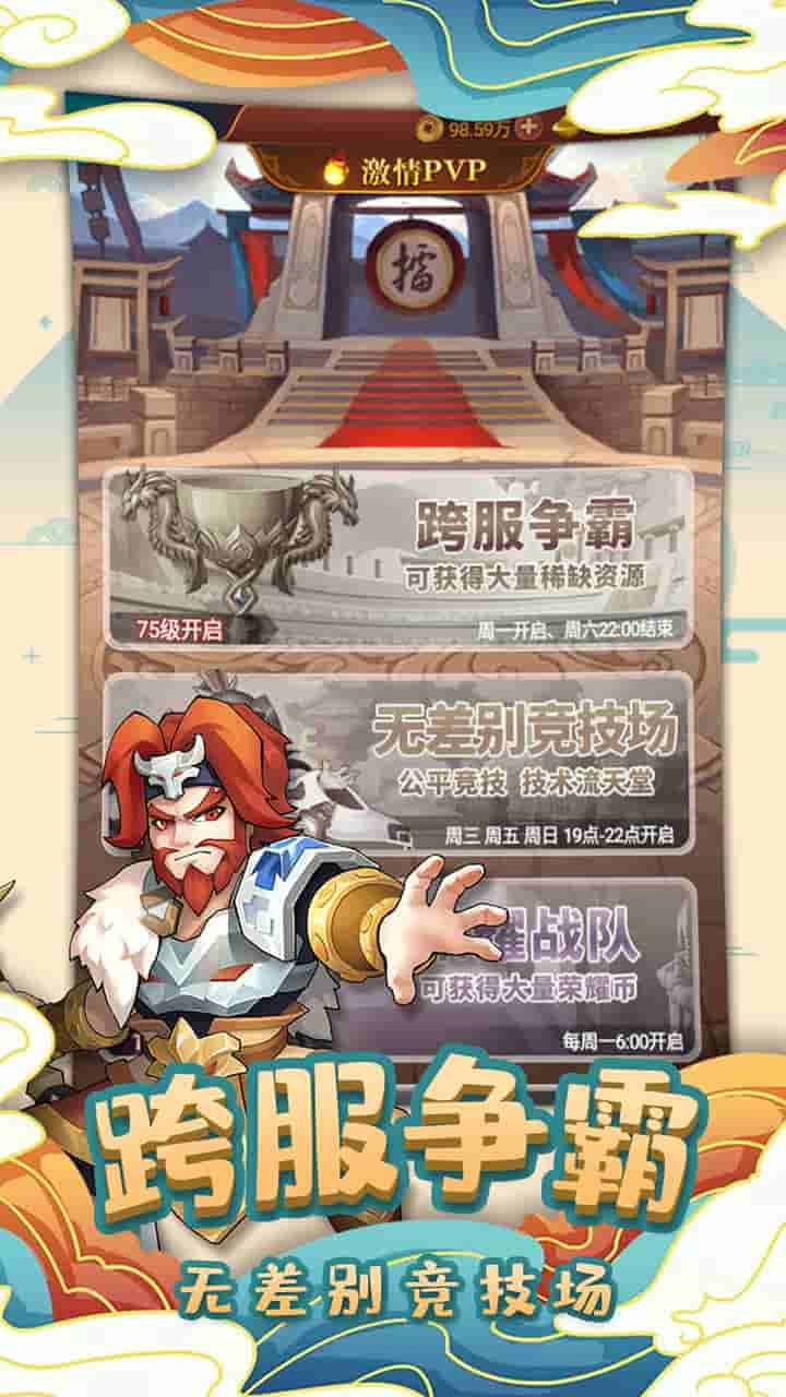 英雄这边请是一款以三国世界为背景的发展战略卡牌游戏,有趣的情节,轻松的防范措施,丰富多彩的福利。游戏中一键免费下载就等你携带小兵,点将上场,成为一方霸主!