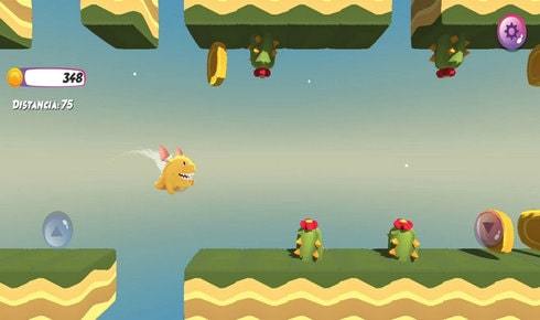 白色加纽扣:游戏的操作很简单,点击屏幕控制恐龙跳跃过障碍就好。
