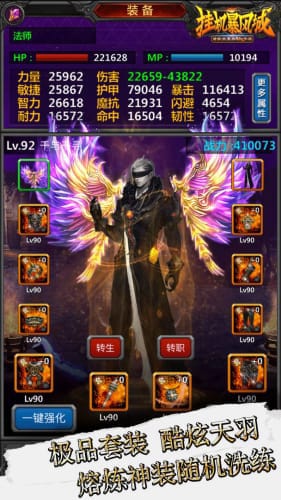 大型精美玄幻世界,多人在线跨服争霸,获取众多稀有道具,打造顶级的神兵利器