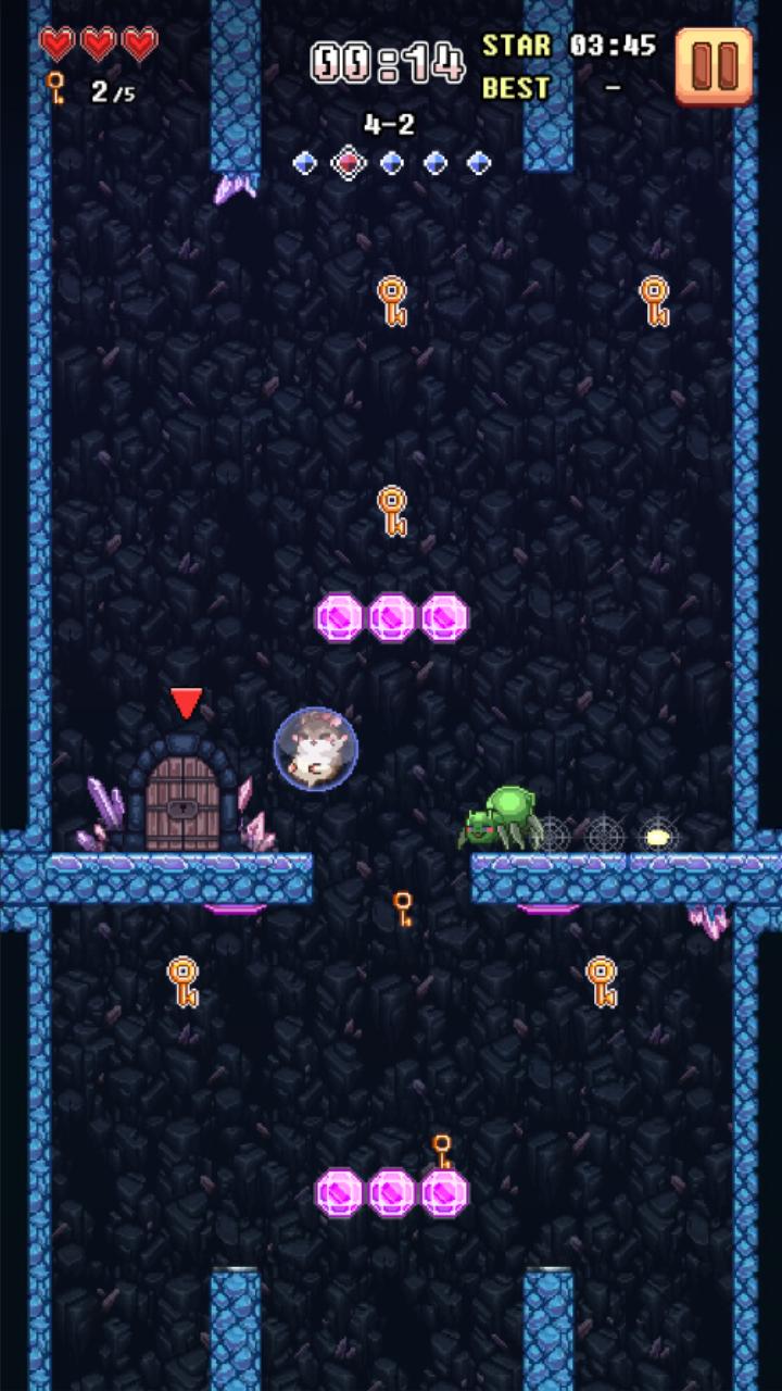 超级仓鼠球是一款像素风冒险闯关类游戏,玩家操纵灵活的小仓鼠,躲避各种陷阱和敌人,小心猫咪的追击,卡通像素风的地下世界充满冒险,快来帮助仓鼠顺利逃脱吧。