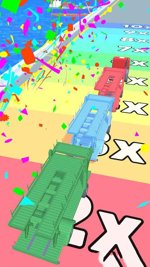 2、你需要操纵卡车头持续收集不一样颜色的车厢,想2个或是之上同样颜色的车厢收集以后就会合拼产生很大的车厢哦。