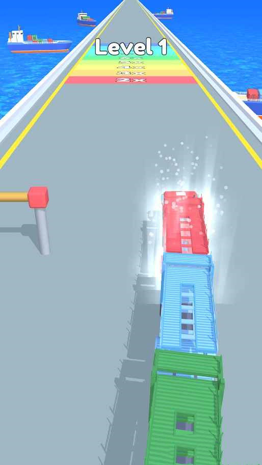 1、开始游戏后,你能上下划动显示屏,操纵卡车车前收集大量的车厢,还能够合拼转化成更高等级的车厢哦,当心阻碍物,只需取得成功来到终点站就能获取最后的机会。