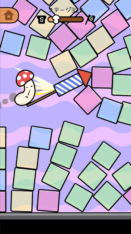 2、简约清爽的手绘卡通风格画面,只需要滑动就能轻松操作,让蘑菇飞跃出去,躲避障碍物成功到达终点;