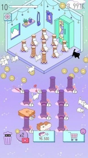 关卡任务是将所有这些猫组合成最高等级的猫,并使用您获得的金币来解锁不同级别的猫;