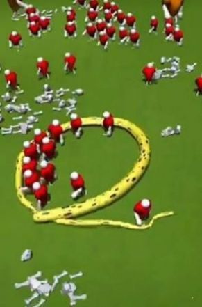 3.控制摇杆走位你的小蛇,不断吃掉人群,实时强化你的蛇哦。