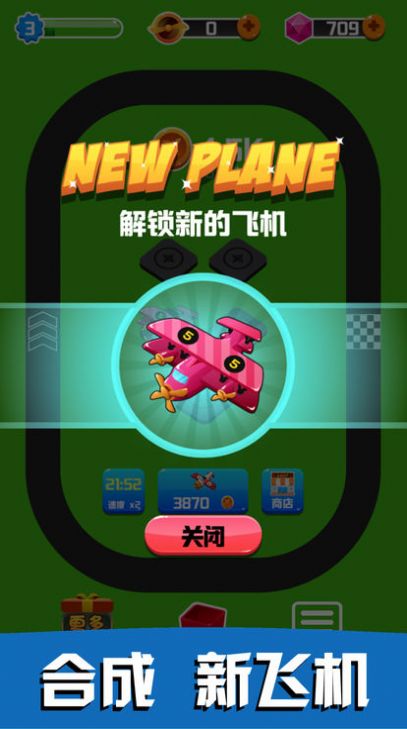 1、游戏采用时下流行的合体类玩法,玩家在游戏中可以将相同等级的飞机合体来获取高等级的飞机。