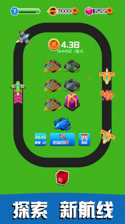 2、丰富的飞机图鉴自由收集哦,各种不同的飞机自由选择,收集更多的飞机来帮你赚取金币哦。