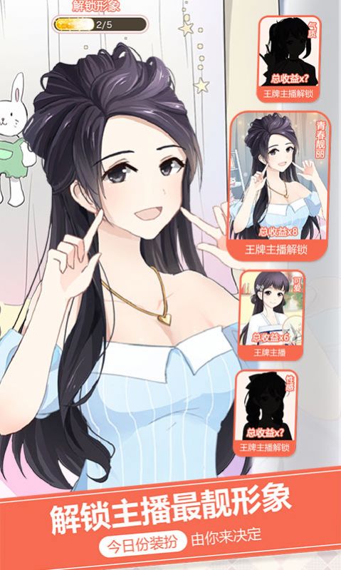 1、打造顶级网红的趣味模拟游戏,选择漂亮的主播,学习各种才艺;
