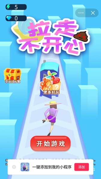 拉走不开心游戏是一款非常好玩的跑酷闯关游戏,游戏有非常多的关卡,玩家可以尽情的挑战闯关,玩法十分的有趣,注意躲避关卡中的障碍物和危险,收集宝箱,快速到达终点,可以慢慢解锁很多厉害的道具使用,感兴趣的小伙伴快来下载游戏试玩一下吧。