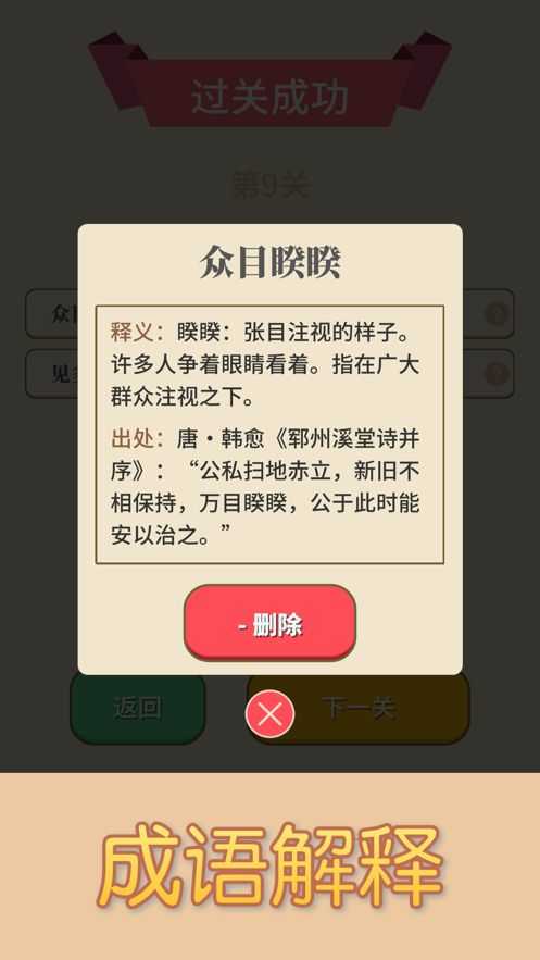 大量的有关成语的题目等你挑战,答对还有释义展示;