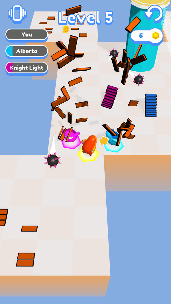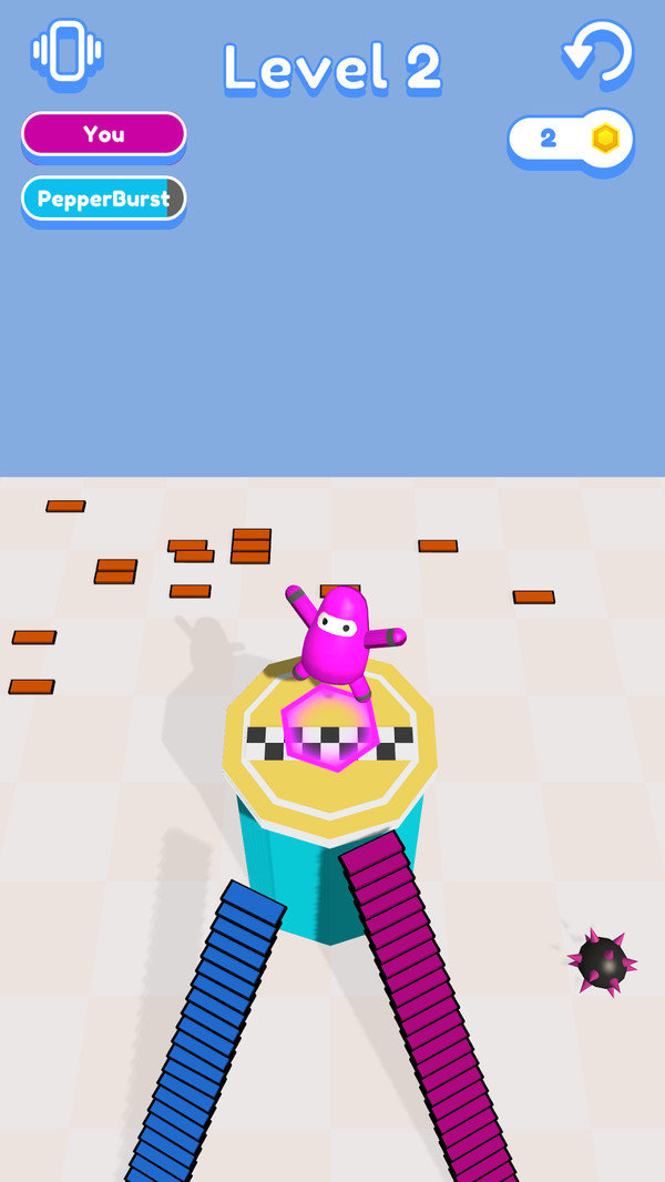 这个游戏非常有趣。这是一个多人在线游戏。玩家需要使用自己的操作将梯子放置在关卡中。在这里,您将和其他玩家一起。站起来争取梯子。您需要快速做出反应,并挤掉该级别中的所有不同玩家,以便您可以更快地爬升到最高点,并且首先到达终点的玩家才能赢得比赛,因此手速和反映它的能力是一个非常关键的因素。阻止其他玩家向上攀爬也是您的任务目标之一。这很有趣。